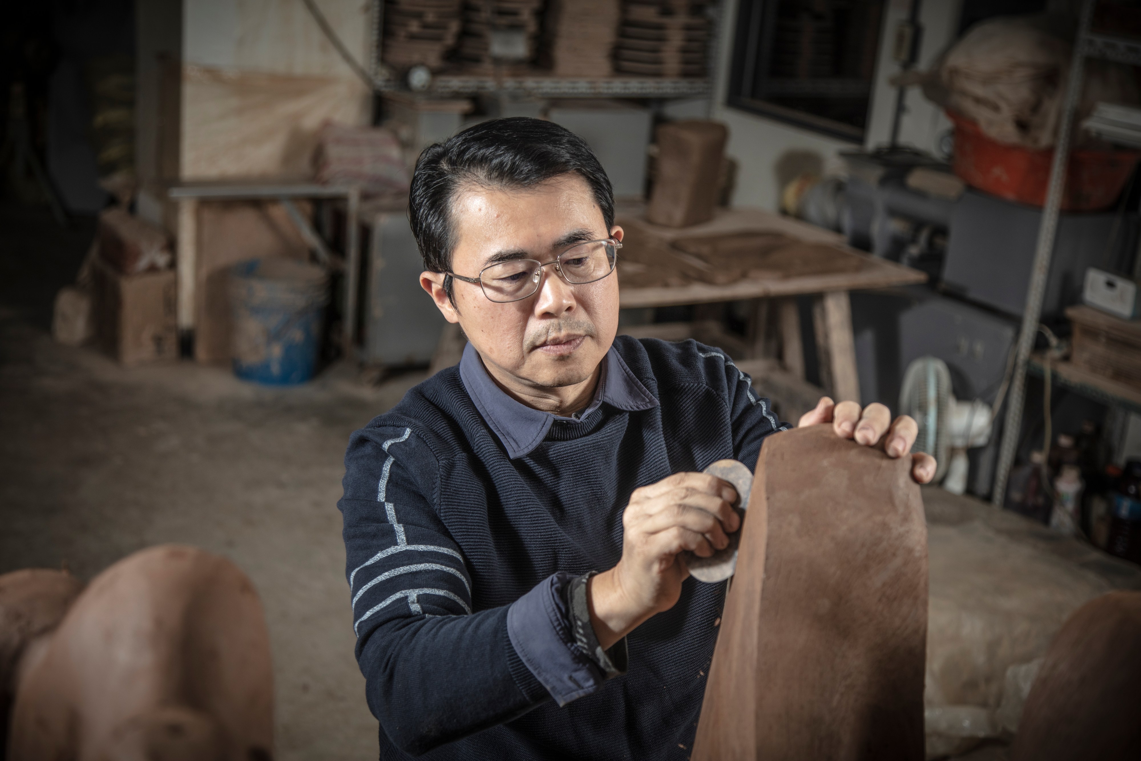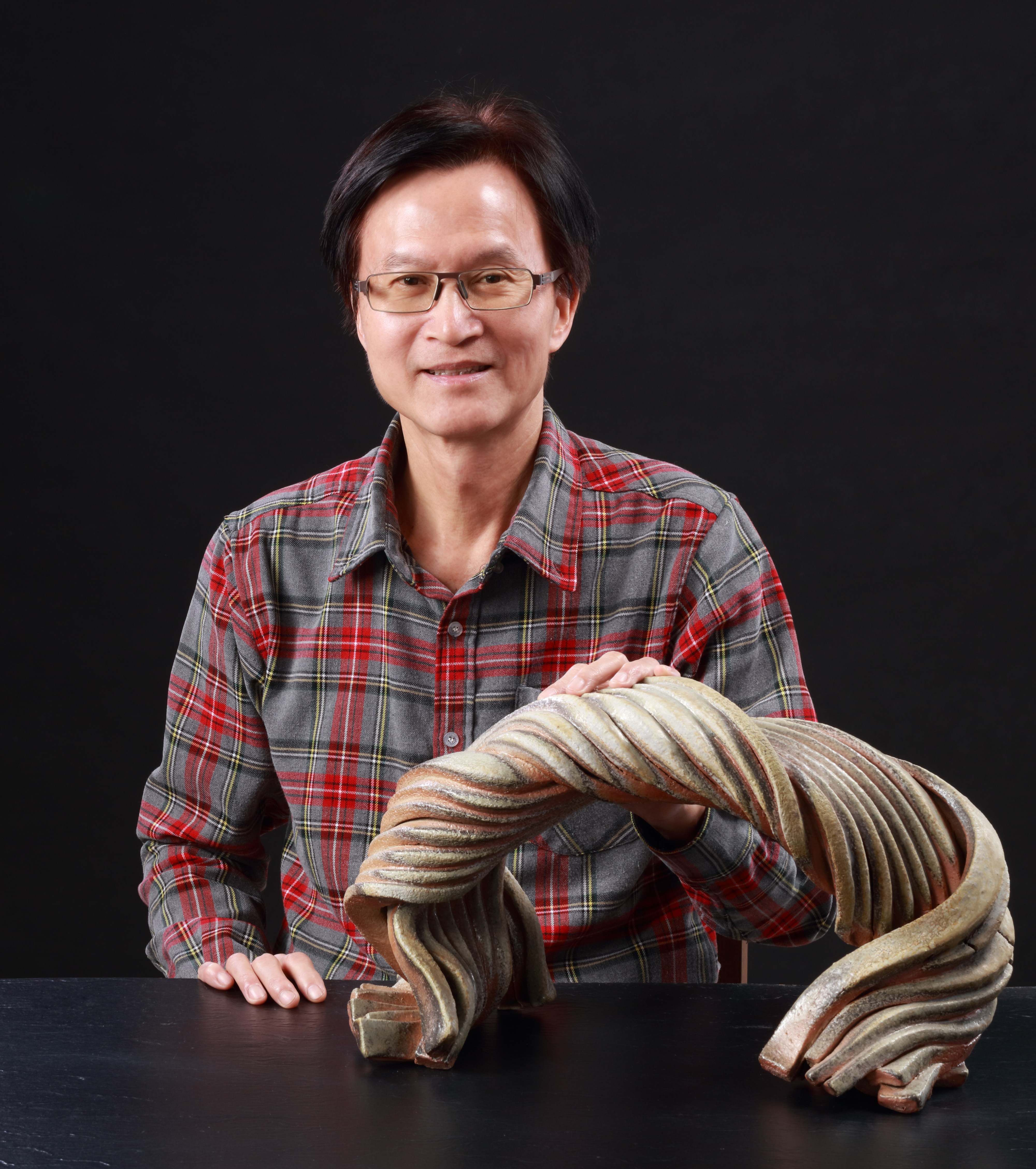 以傳統為基,以一種傳承與蛻變的概念,將傳統製作大水缸之手擠坯技法,予以運用、轉換,進行現代陶創作,利用手擠坯一體成形的特性,協助成形的當下性,立即與快速地變換,及機器製作難以達到的角度變化。整體創作中心思想,以”生活藝術化,藝術生活化! “的概念,融入佛、道、禪、老莊哲學思想,與東、西方美學結合,以隨意自在的手擠坯方式,再以易經”一陰一陽,謂之道! “之「陰」、「陽」「虛」、「實」概念,轉換成立體造型的空間意念,以抽象的形式,創作現代陶,試圖聯結宇宙自然生命之脈動,闡述個人對生命的體悟。