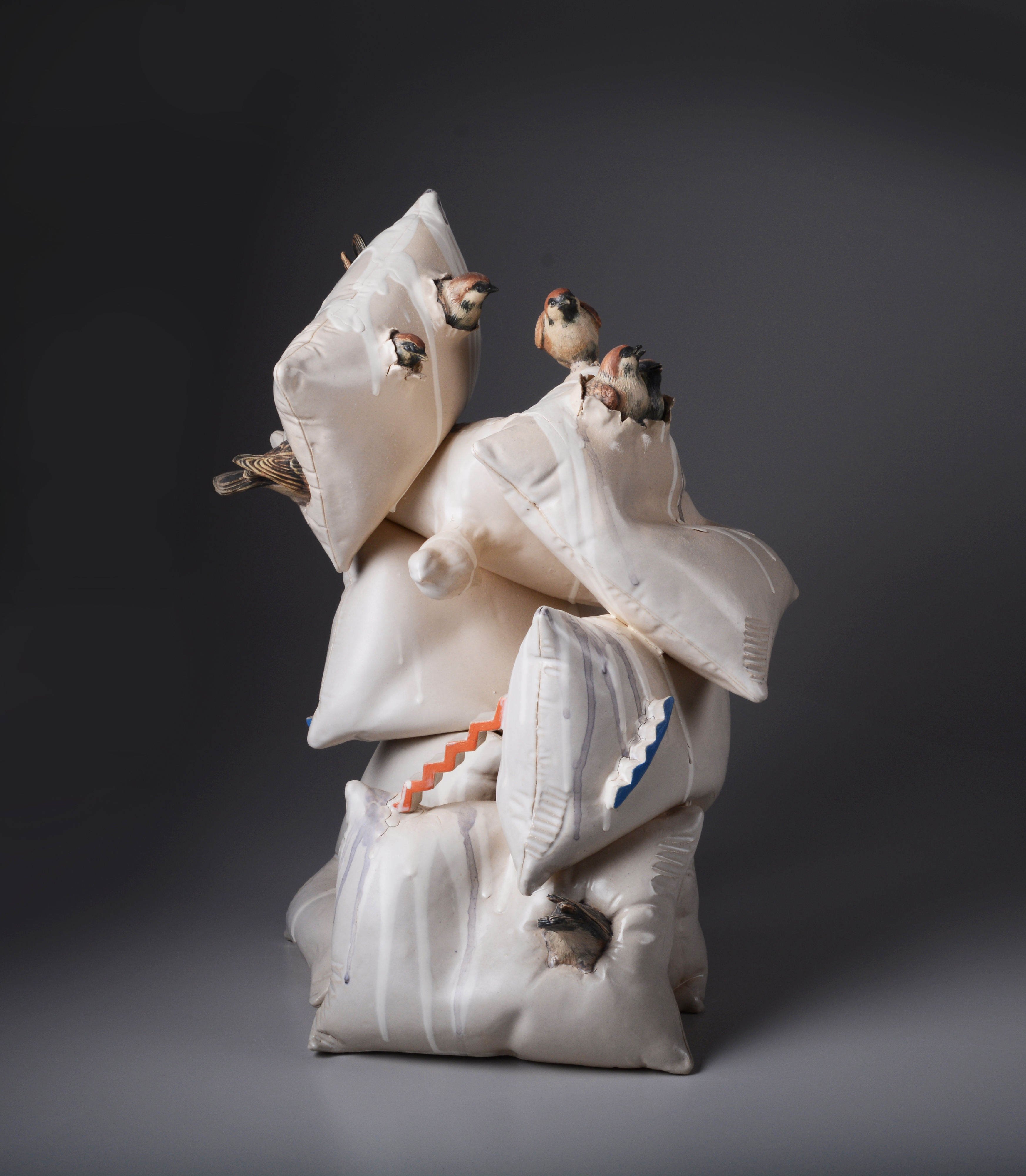 在藝術的領域裡「改變,是唯一的不變」。早期我的創作大都是以人物為題材,塑膠和銅為材料,2004年我開始思索改變創作形式和材料的可能性。為此特別去工作室研究陶瓷,研究的過程中我發現陶瓷可以呈現出來的釉藥色彩、多元土質、樸拙和光亮兼具的特質是銅、石頭、木頭所不足以表現的,自此我深深為陶所著迷。