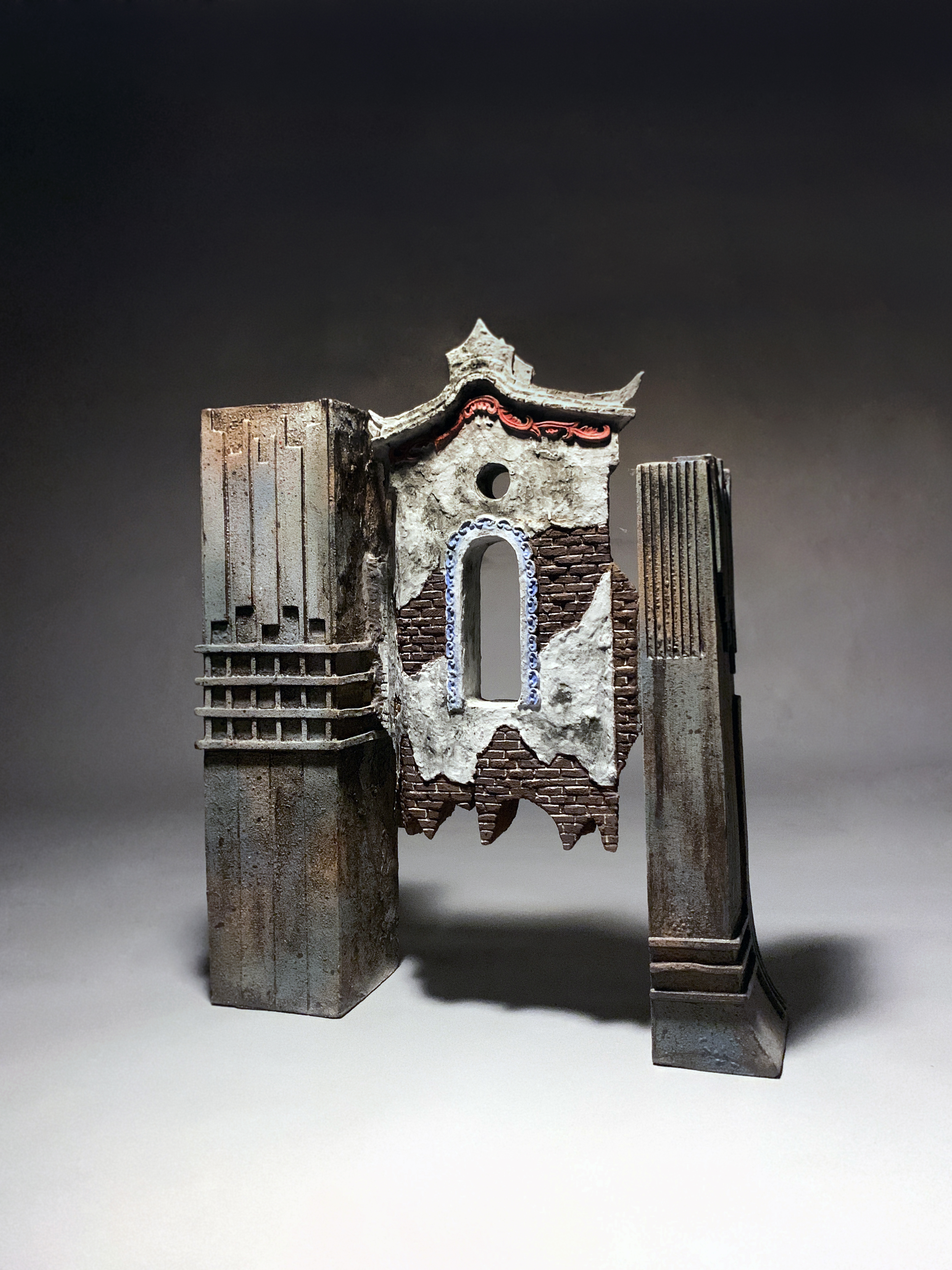 由於對台灣古厝有深厚情感,所以接觸到台灣傳統建築的發展歷史,尤其提及當時人們為了軍事需要所建造的城門,以及當時的建築史,都讓我產生極大的興趣,一直想深入的了解與探究。台灣古城門那份神秘與迷惑,到底在當時有那些達官貴人與販夫走卒從這裡經過、此地發生何種重要的戰役、甚至是如今我們所踩的這塊土地上,曾經有過哪些感動人心的故事等等,讓我有一股莫名的使命感保護古蹟,因為深信著,這些古蹟的存在即代表著台灣歷史與深厚文化內涵,所謂文化即是人類生活的累積,那些前人所留下的蹤跡與故事,是後人應予保留且深記在心,藉由陶藝創作喚起觀賞者對於文化保存的重視與共鳴與,也希望沒能親身體驗在古蹟建築下生活的年輕一輩朋友們,也能共同欣賞古代建築的美與感動,藉由微薄的力量,是為一種另類的古蹟保存的形式