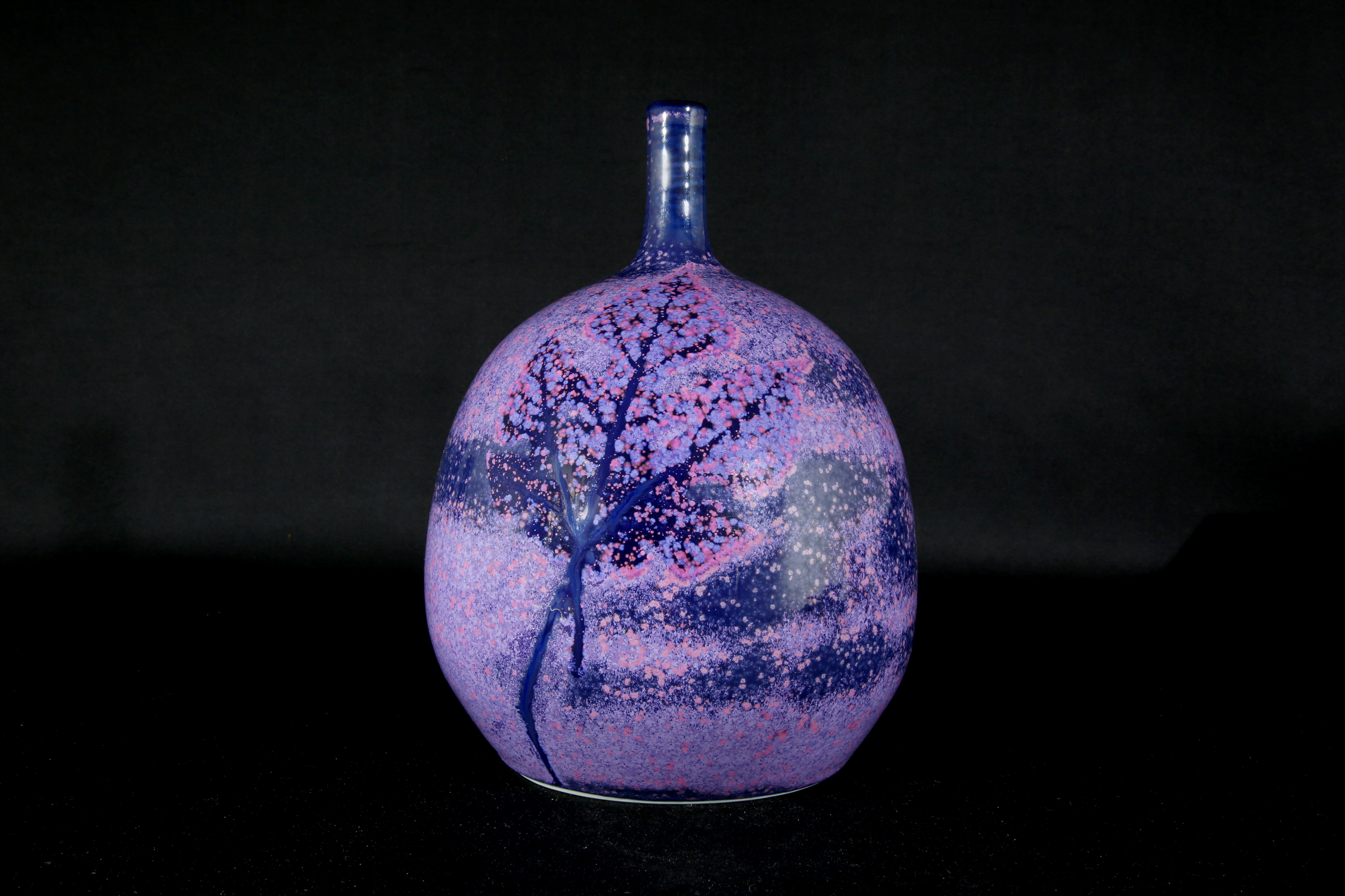2013年夏天,黃玉英在法國普羅旺斯停留月餘,一望無際的薰衣草花田,深深烙印心中,使她興發創作明媚的釉色以定格那份恆長的感動,釉面光亮與蒙霧變化有致,呈現薰衣草花田四季的流轉。正緣於大自然銘心的感動,使悠長的憶念化為無垠的粉紫、嫩綠、碧藍與亮白,芳鮮耀目,共舞隨風拂來的薰衣草香,鋪展浪漫的風情畫卷。